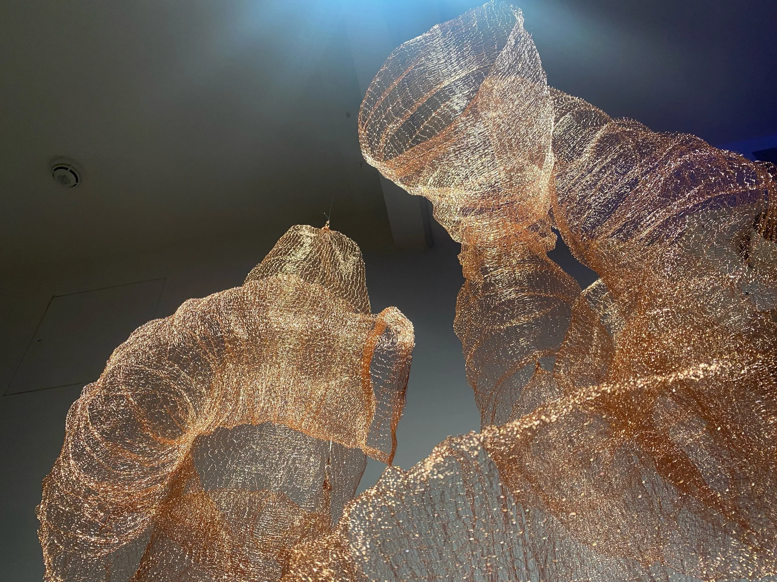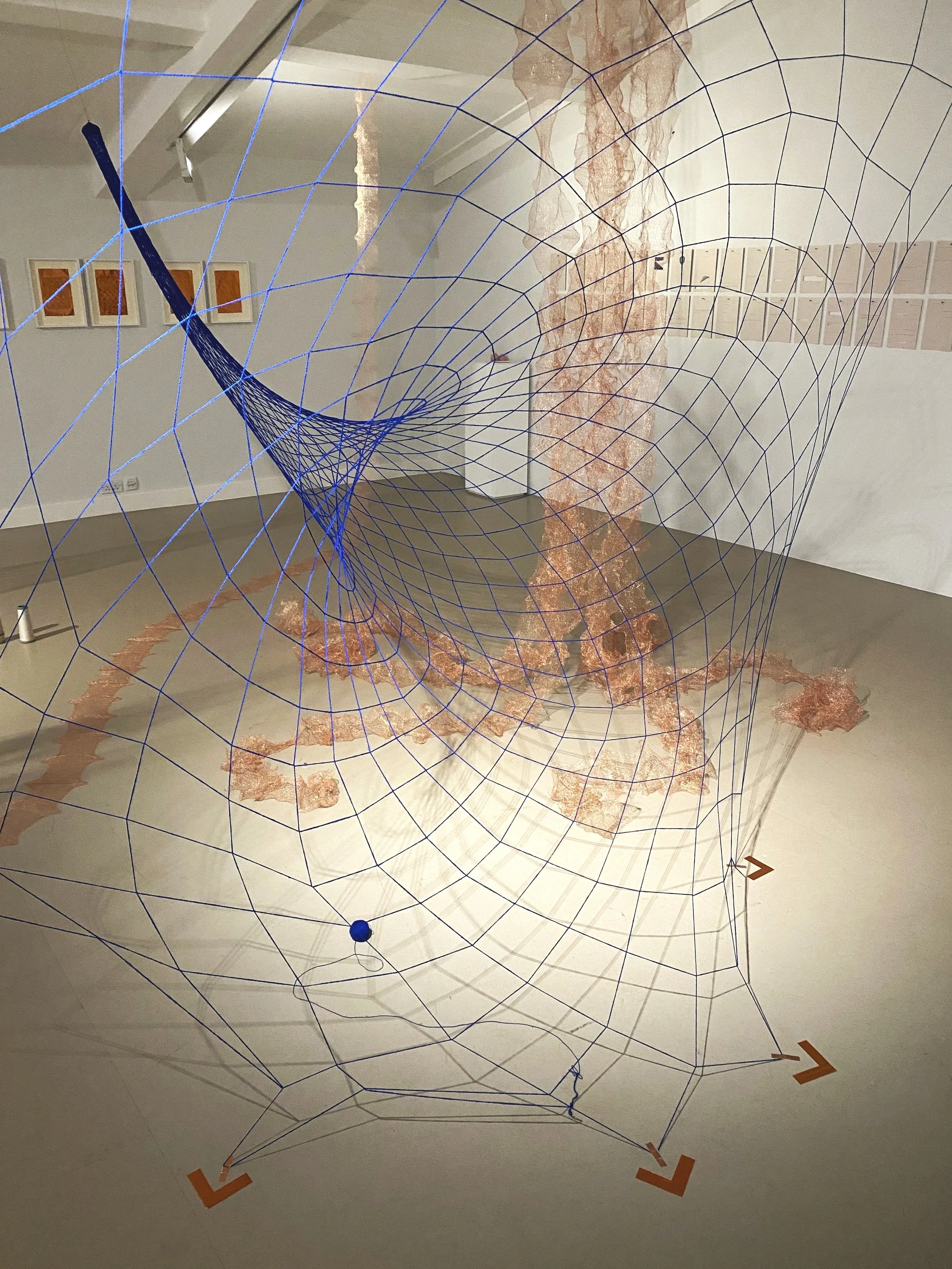 The installation connects Einstein's general theory of relativity, according to which space, time, and gravity are interwoven in the “spacetime fabric” of the universe, with contemporary concepts and theoretical quantum physics.