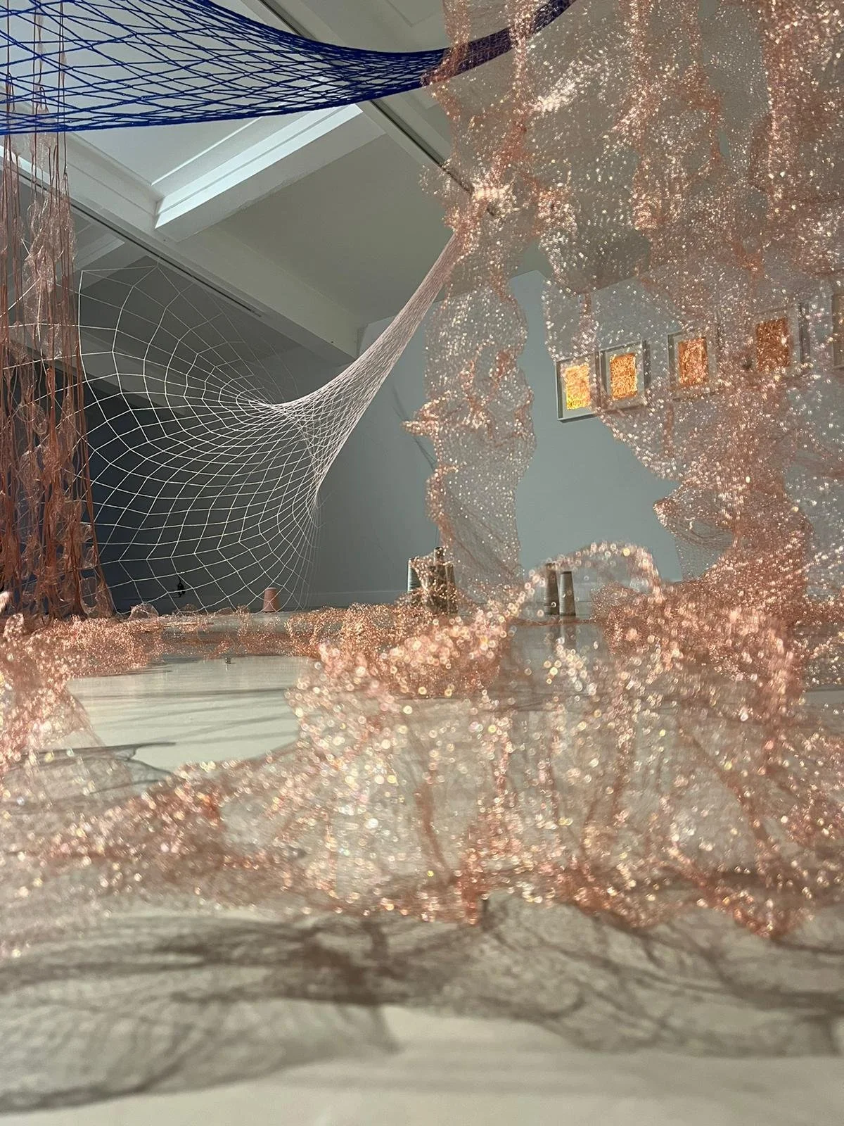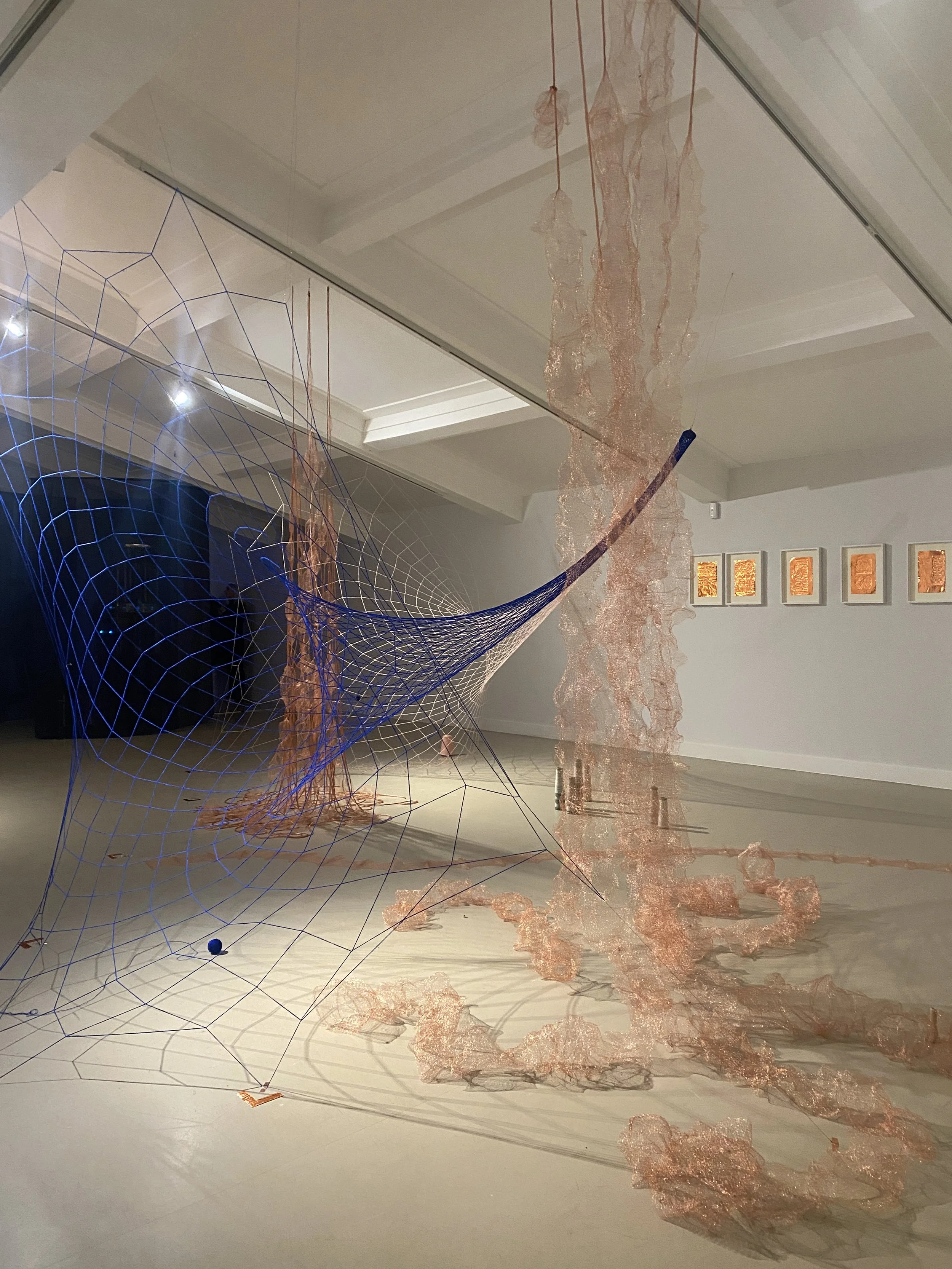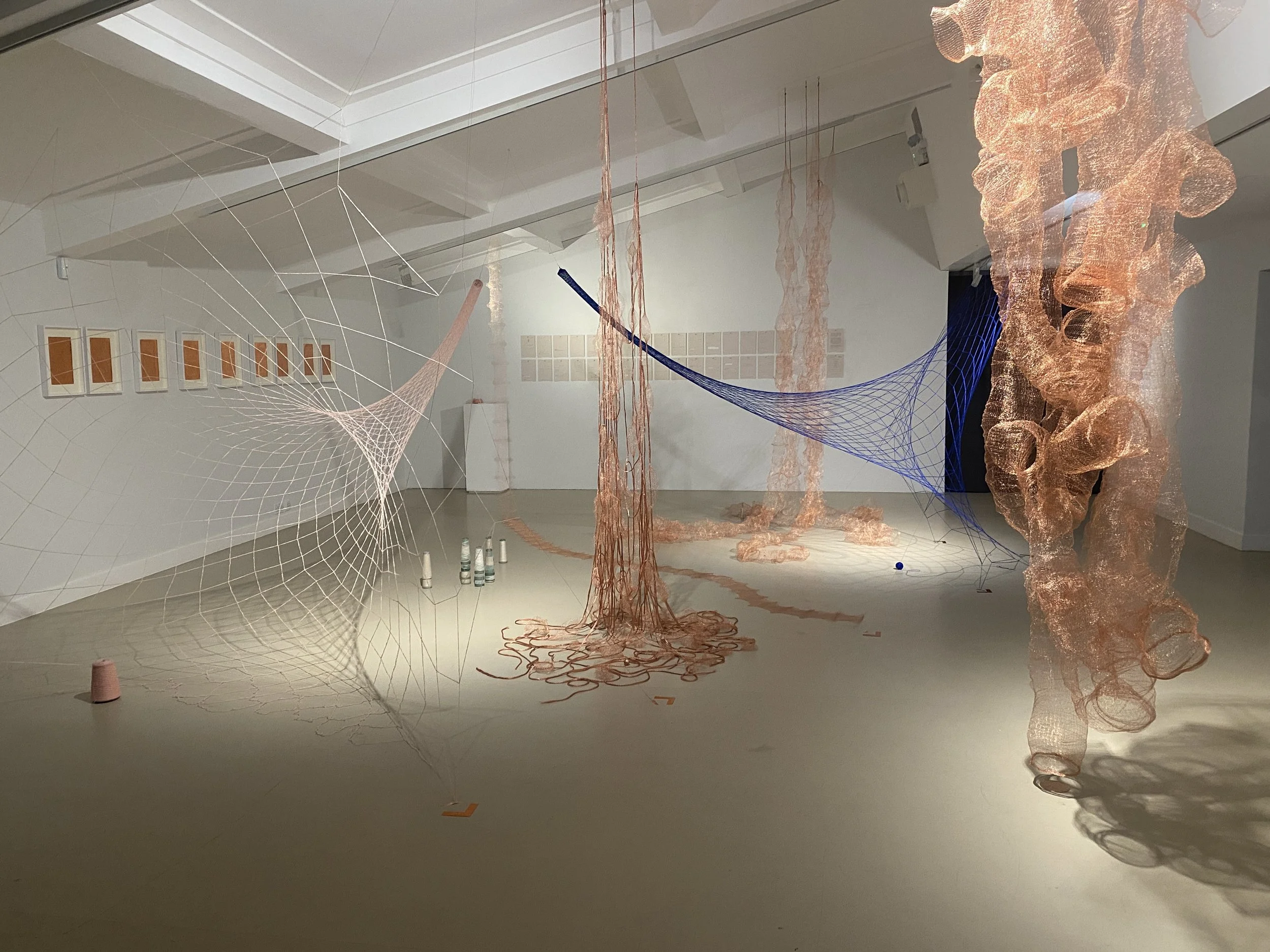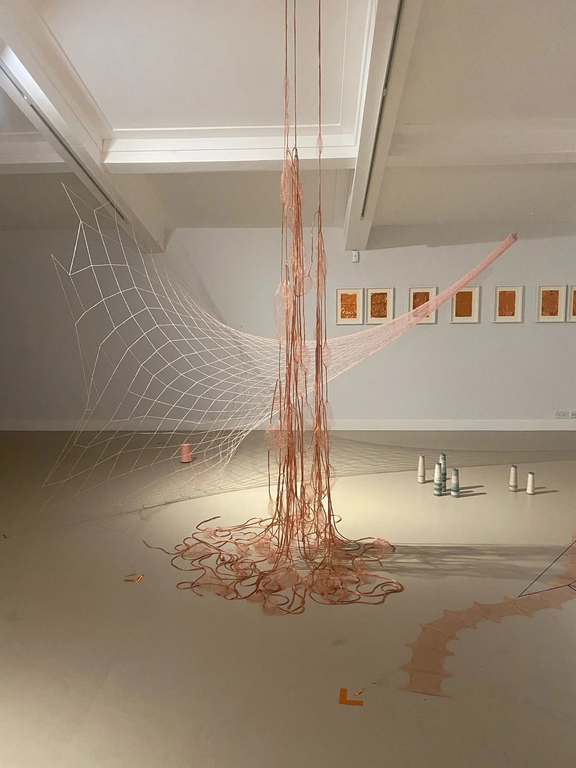 For a week in September 2024, Brill Estrada and LoCascio spent a week with the scientists at GravityLab at the University of Nottingham researching black holes, dark matter and energy, and superstring theory. During this time, the duo also visited local lace factories and historical textile mills. The language, metaphors, shapes, and materials from these visits all made their way into the installation artworks, highlighting the site-specificity of the project.