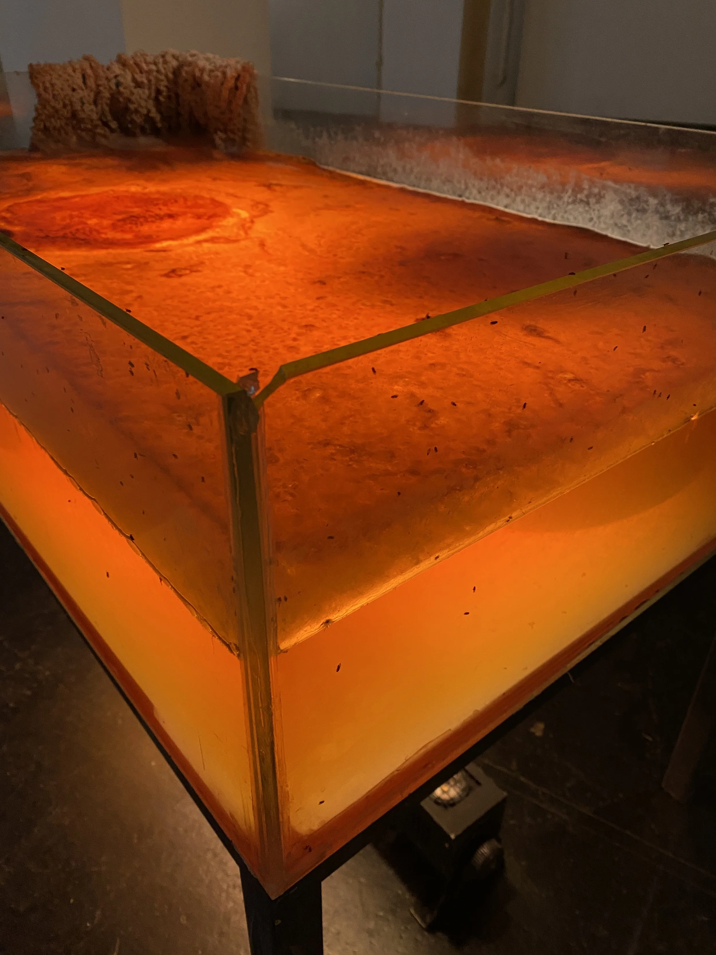 My work with fermentation processes and microorganisms as collaborators, both in vitro and as preserved specimens honors our lived and evolutionary symbiotic relationship with bacteria. The works further serve as methods of exploring hierarchies of power, value, and labor. Furthermore, they are an act of resistance to hard boundaries around “the self” — our bodies hold more bacterial cells and DNA than human, and research highlights the likelihood of all multi-celled organisms having evolved through symbiosis in a dance of collaborative synergy rather than brutal competition. What is “me” and “mine” when “I” is composed of so many, and when symbiosis is an essential factor in our very existence?